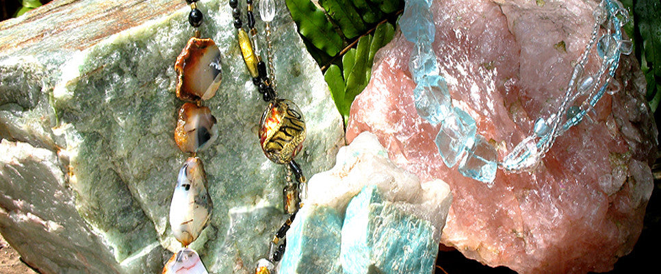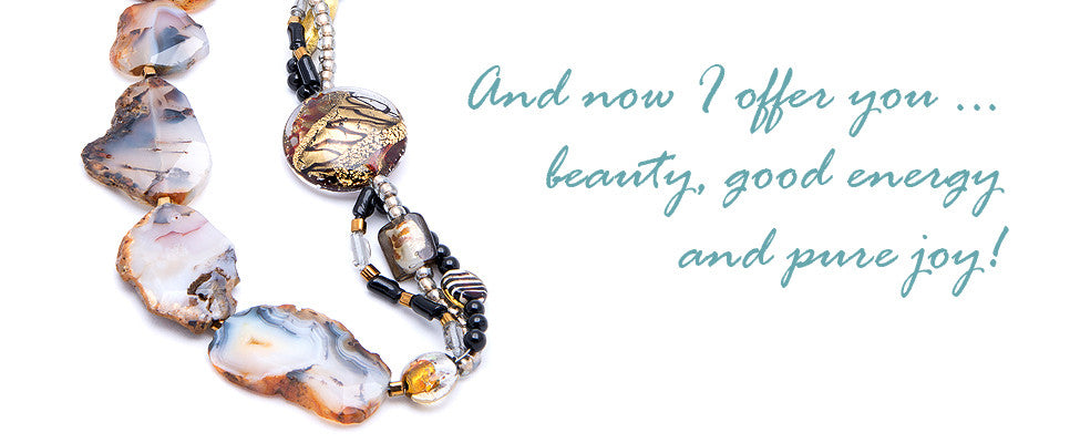 For each necklace, I'm inspired to hand-pick 4 or 5 stones ... each with those marvelous imperfections available only in something this natural. I then marry the stones to the perfect glass beads ... and check the energy of all the elements to be sure they harmonize. My goal? To create a piece that makes you look and feel like a million bucks whenever the necklace is around your neck!